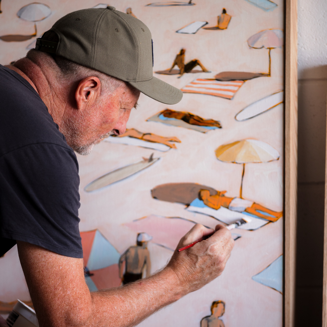 Mitchell English is a celebrated Australian artist known for his bold, sun-drenched works that capture the spirit of coastal life.