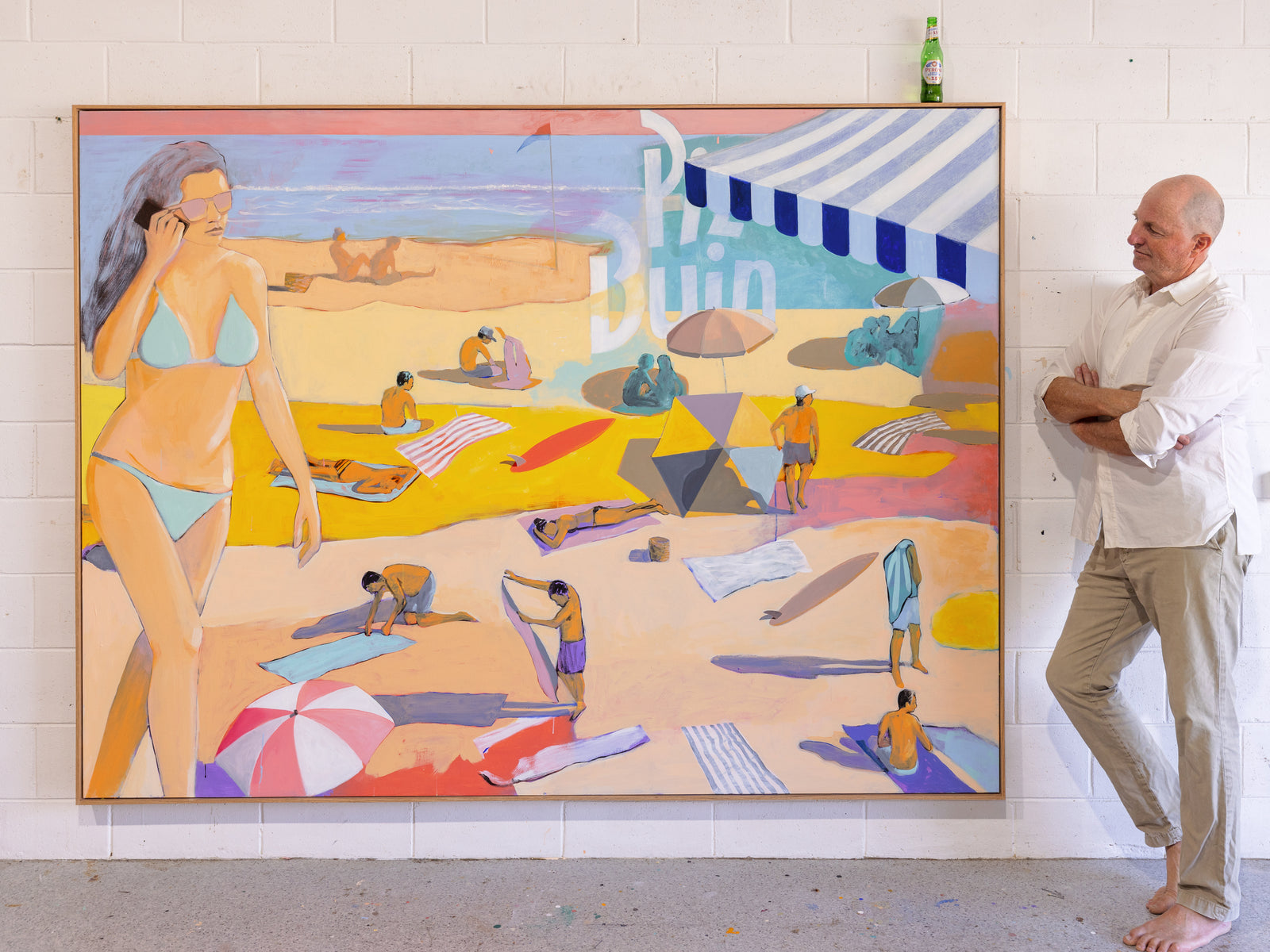 Mitch's signature sun-drenched colours, summer vibes, and figures stretched out on the sand come together on the country's leading sun shelter.
